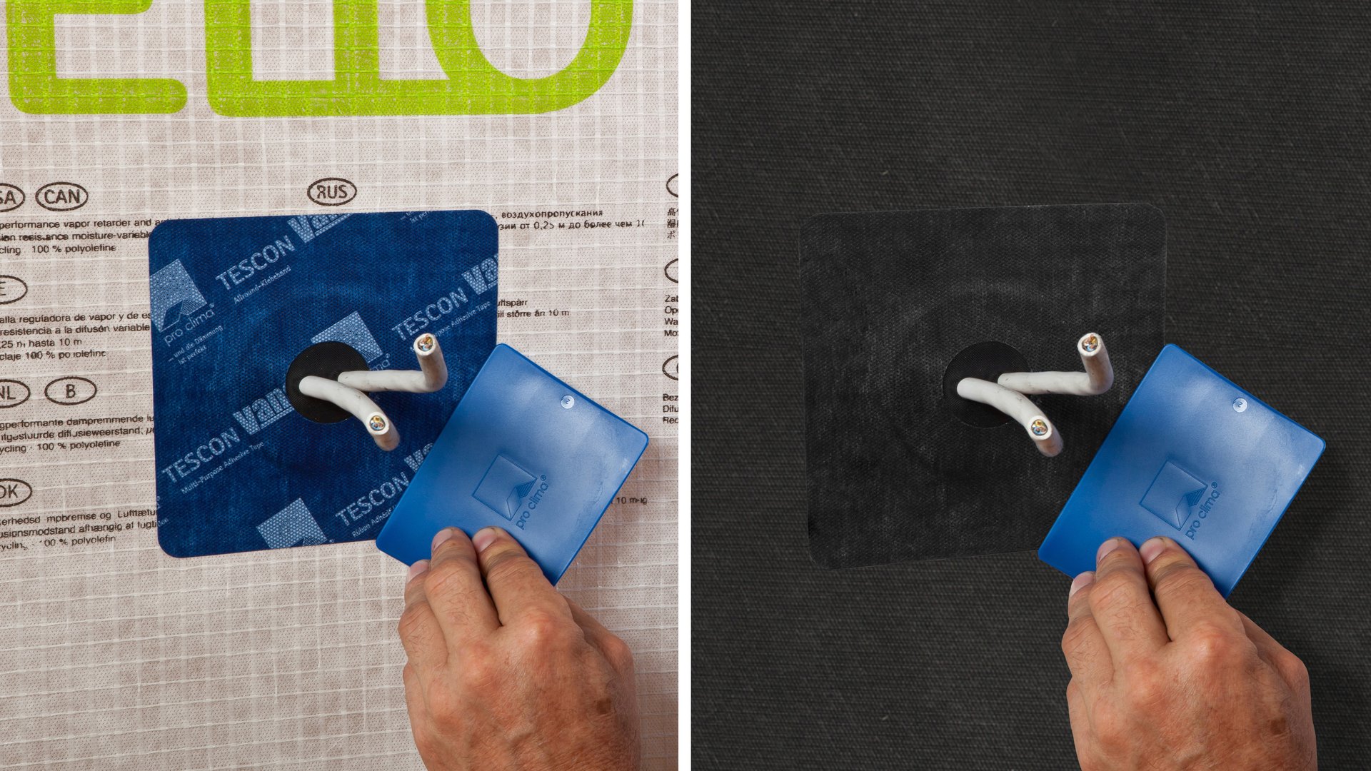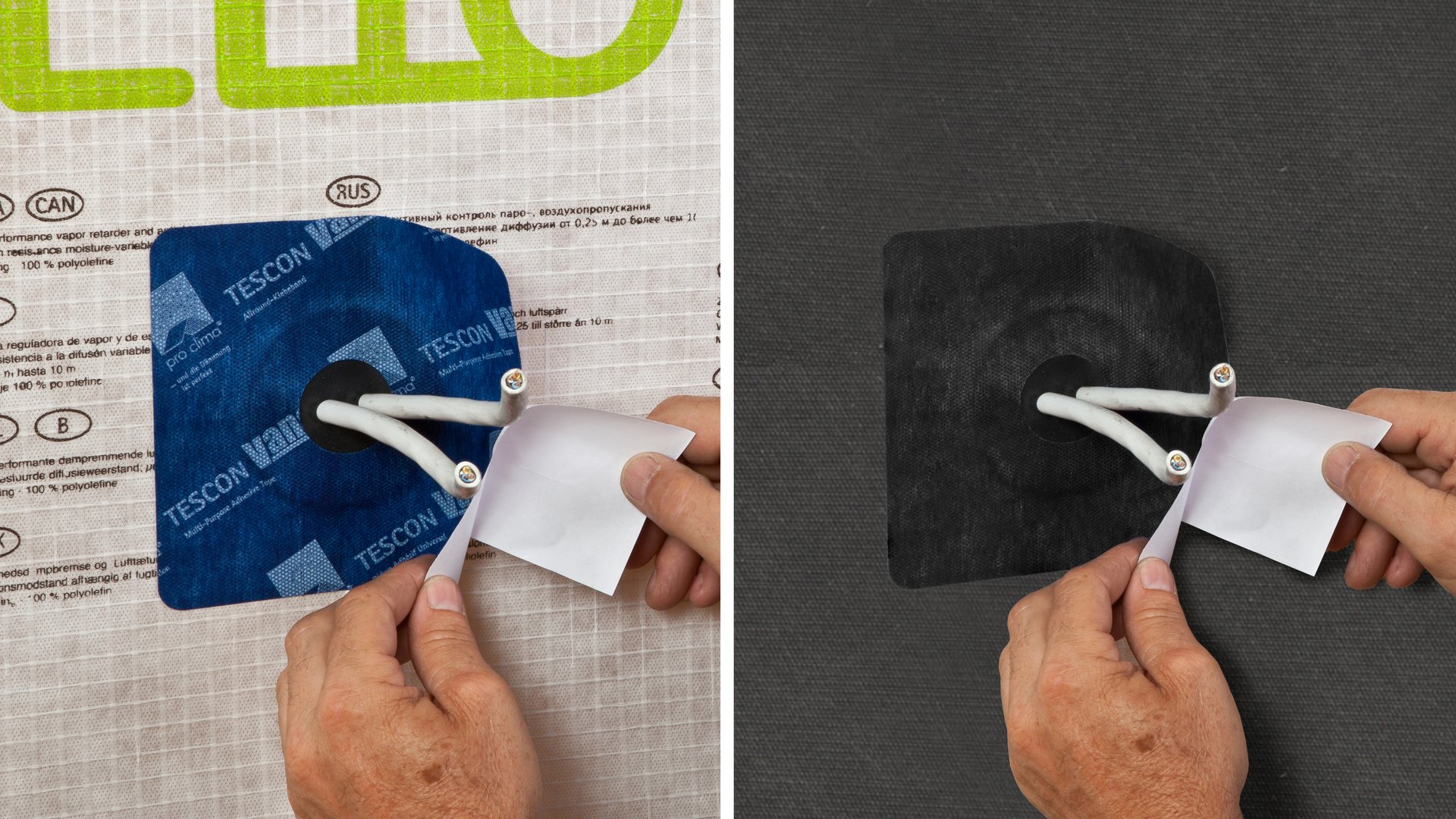Passare il cavo tramite il foro prestampato in EPDM, posizionare il raccordo sul sottofondo e livellare.
